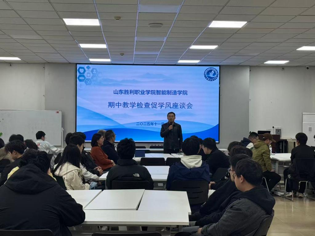 为强化学风建设、助力学生早日成材,山东胜利职业学院智能制造学院于2025年11月12日、13、16日连续三天召开期中教学检查“促学风 助成才”座谈会。座谈会聚焦学生学业发展核心需求,围绕课堂教学质量提升、专升本备考规划、技能证书获取路径及就业创业指导等议题展开深入探讨,旨在通过倾听学生心声,了解学生诉求,推动“以学生为中心”的教育理念落地。本次座谈会校长助理、智能制造学院院长主持,智能制造学院党支部书记杨帆...