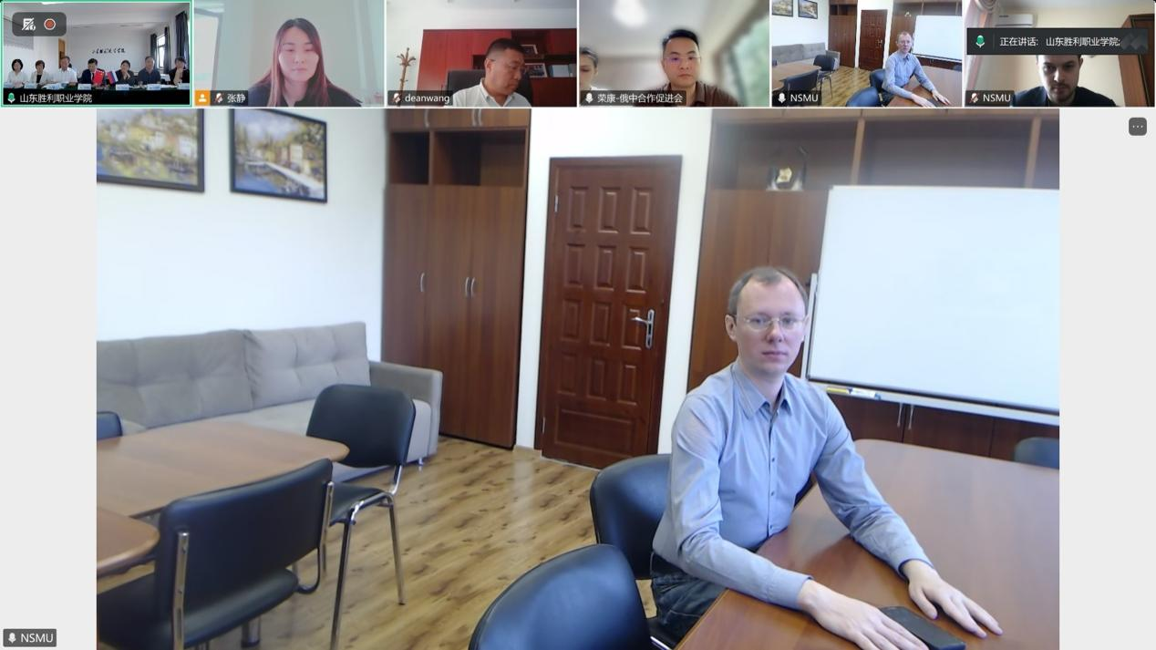 2025年9月29日,山东胜利职业学院与俄罗斯北方国立医科大学成功举行合作办学视频推进会,就共建口腔医学、药学等专业的联合培养项目进行深入洽谈。会议由国际学院院长张建民主持,俄中合作促进会执行会长荣康担任翻译。