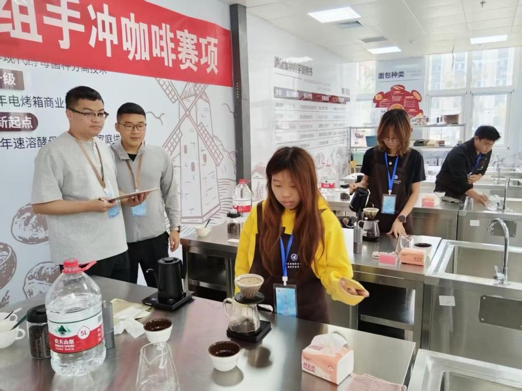 比赛现场,咖啡香气四溢,氛围紧张而热烈。在教师赛中,各校教师们沉稳发挥,精准把控水温、水流与萃取时间,充分展现了扎实的理论功底与精湛的实操技艺。学生组的选手们则精神饱满,操作流畅,从研磨、闷蒸到冲泡,每一个步骤都力求完美,展示了新时代职教学子的青春风采与工匠精神。