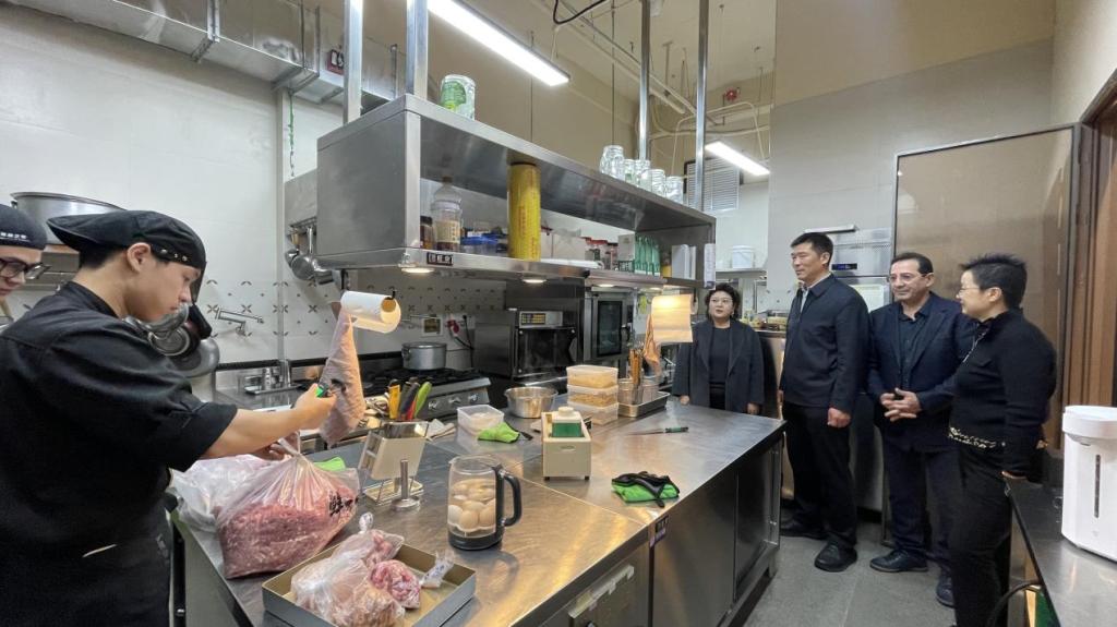 仪式前,杨峰副书记、酒店管理学院书记张德胜和国际学院院长张建民与企业代表座谈,了解实习学生的工作情况。企业方对实习学生给予高度评价。杨峰副书记表示,企业不仅为学生提供了优质的习就业环境,还搭建了世界餐饮文化交流的桥梁。他提出,应尽快在校内设立“费叔之家工作坊”,邀请企业专家来校开设西餐课程,以提升学生西餐制作技能,丰富校园餐厅的西餐种类。