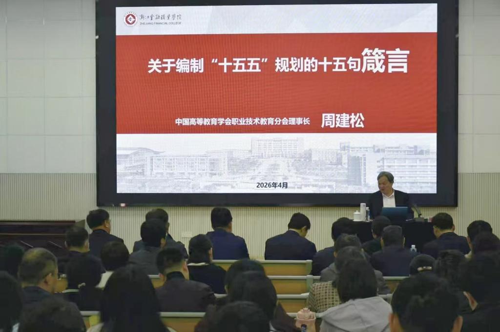 4月11日,我校特邀中国高等教育学会职业技术教育分会理事长、浙江金融职业学院原党委书记周建松教授来校,开展“十五五”时期高职教育内涵建设系列指导活动。本次活动分为专题培训讲座与高质量发展内涵建设研讨会两个部分。学院党委副书记、院长张玉珍主持相关活动。