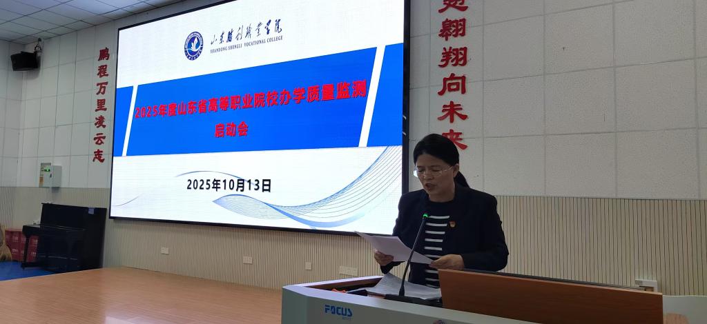 为进一步提升办学水平和人才培养质量,实现以测促建、以测促管、以测促教、以测促学,10月13日上午,山东胜利职业学院2025年度山东省高等职业院校办学质量监测启动会在济南路校区第一报告厅召开。学校领导、校长助理、二级学院及机关处室全体中层及其他相关人员,约60余人参加会议。会议由学校党委副书记杨峰主持召开。