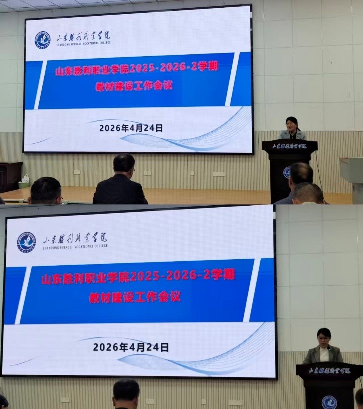 为切实提升教材建设质量与育人成效,4月24日下午,山东胜利职业学院在济南路校区第一报告厅召开2025-2026-2学期教材建设工作会议。学校领导、相关处室和各二级学院80余人参会。