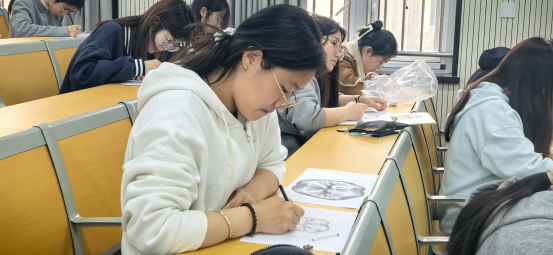 比赛内容为10倍大右下颌第一磨牙的(牙合)面素描,全面考察学生对牙体解剖形态的准确理解、结构表现能力及细节刻画水平。比赛现场秩序井然,参赛同学全神贯注、严谨构图、细致排线,充分展现了口腔医学技术专业学生扎实的基本功与精益求精的职业素养。